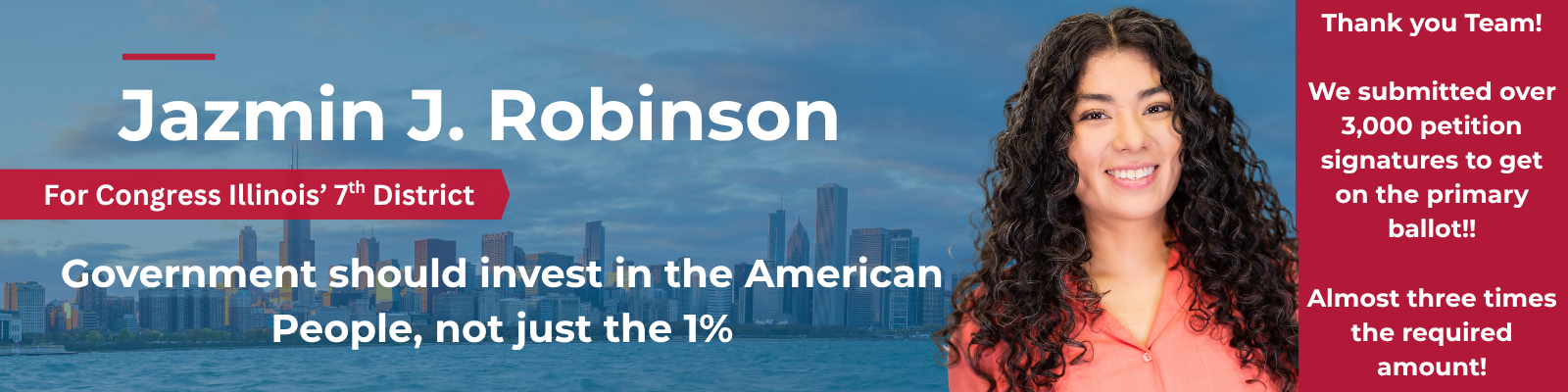 Welcome! I’m Jazmin J. Robinson (she/her), 38 years old, and I’m running for U.S. House of Representatives in Illinois’ 7th District.
